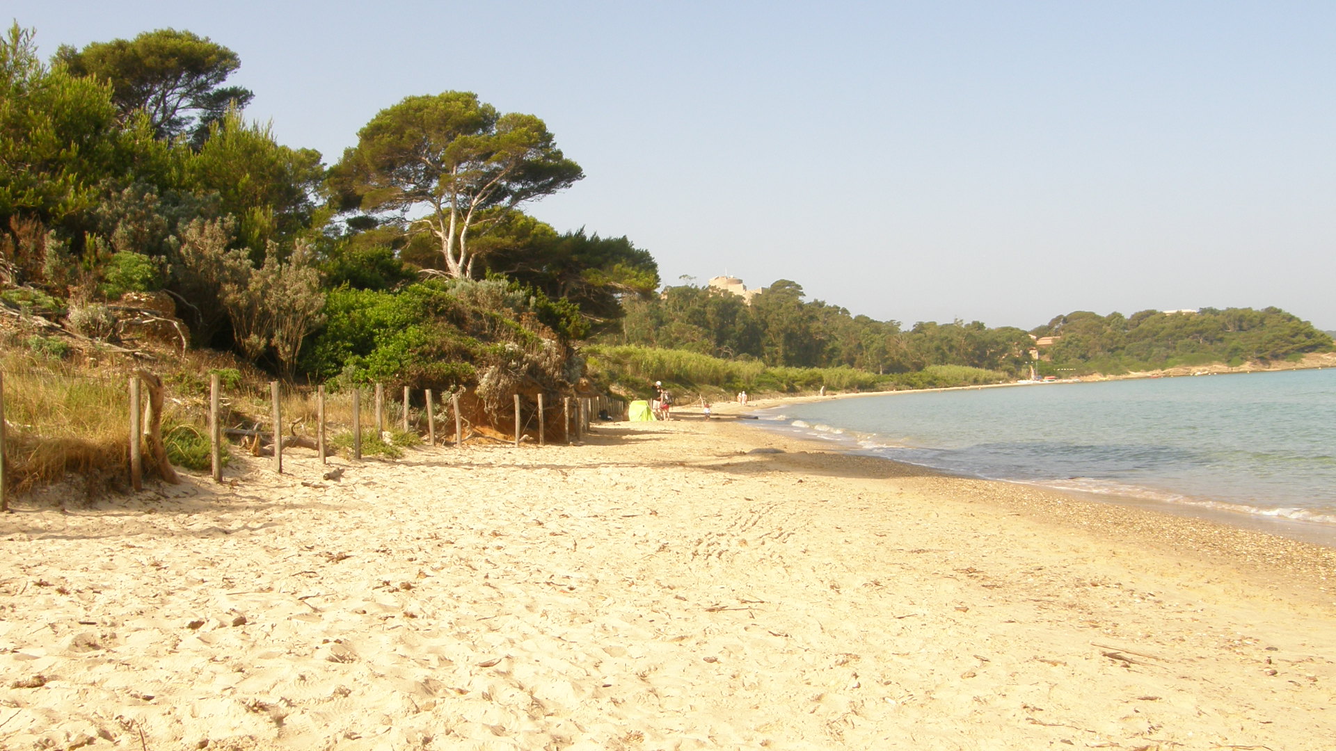 La Plage d’Argent de Porquerolles es la playa más popular de la isla y atrae a muchas familias con niños. Se encuentra a 1 km al oeste del puerto y es la única playa vigilada de la isla.